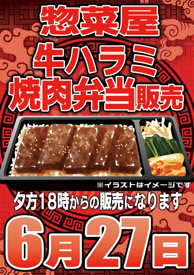6/27(金)牛ハラミ焼肉弁当 販売予定