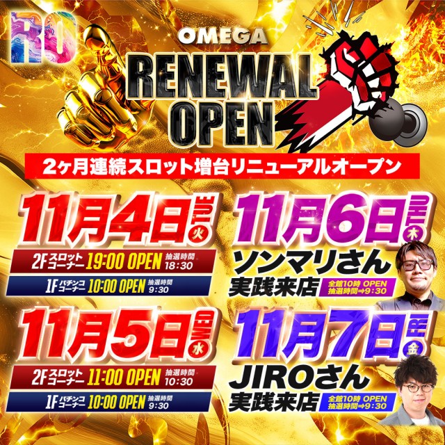 11.4 リニューアルオープン&新台入替!