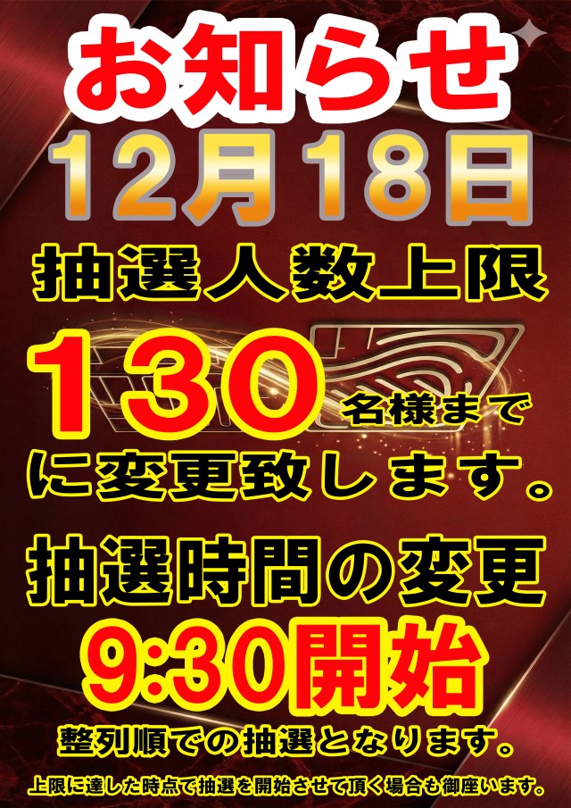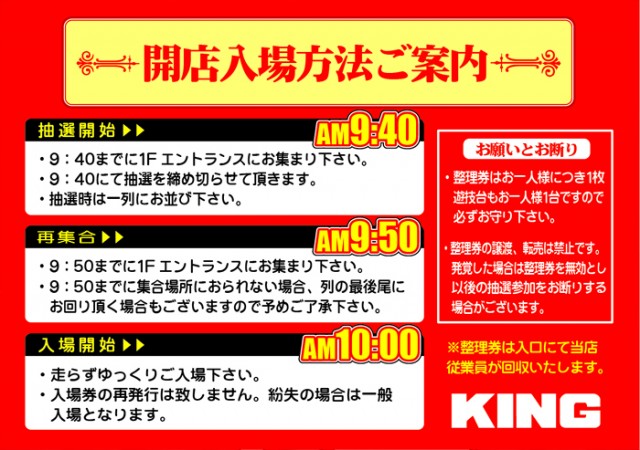 当店エントランスにて9:40より優先入場抽選を開始致します。 |