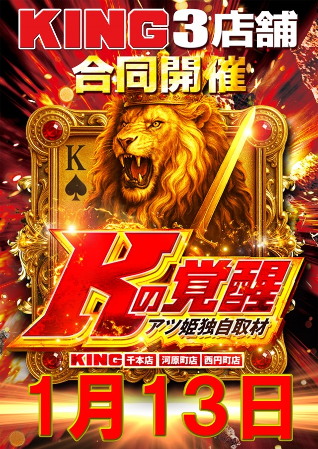 1月13日(火) KING3店舗合同開催!! Kの覚醒!!