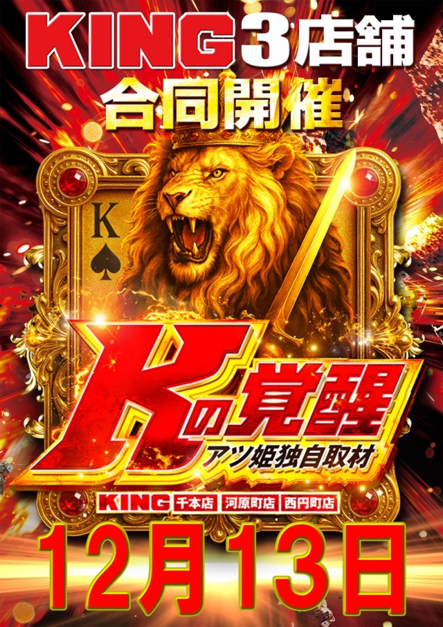 12月13日(土) KING3店舗合同開催!!Kの覚醒!!