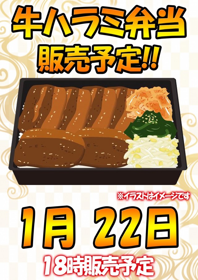 1月22日(木) 牛ハラミ弁当販売予定!!