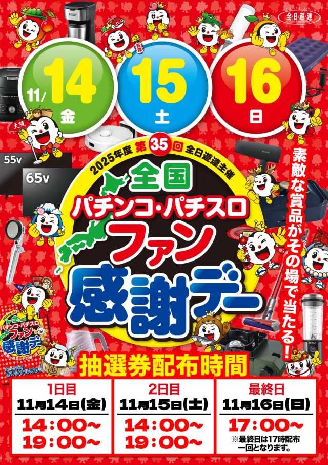 11月16日(日)全国ファン感謝デー開催!最終日!!