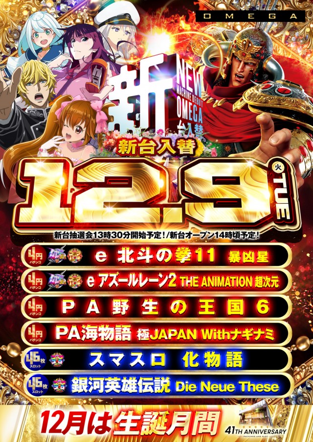12月21日(日)生誕41周年!ALL46枚スロット!!