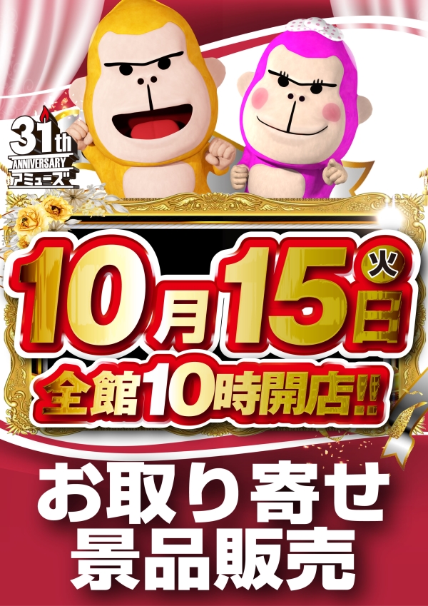 明日10月15日全館10時開店!