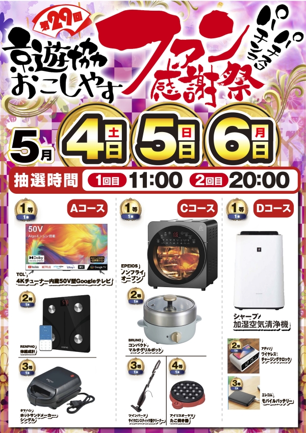 9時30分より抽選券配布 9時40分より抽選開始 |