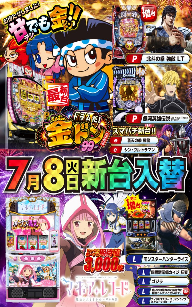 7月8日京都最大級低貸専門店の新台入替!最新台導入!