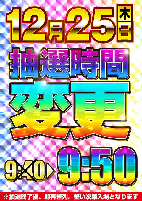 25日(木)※徹底対抗※抽選時間変更!【9:50】開始!