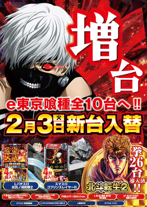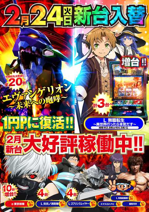 24日(火)新装開店!!エヴァ15増台!L無職転生増台!