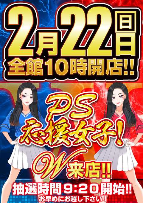 22日(日)PS応援女子W来店!抽選からお並び下さい!