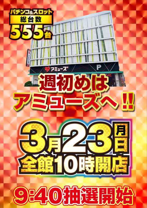 20日(祝)10時開店!3連休もアミューズへ!