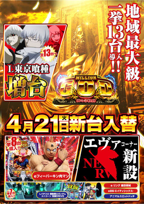 【21日】GOD13台等最新台大量導入!この後新台抽選開始!