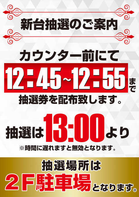 10:00 ~ 23:00 遊技終了は22:45となります。 |