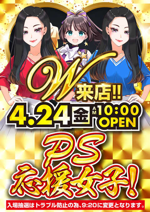 24日(金)PS応援女子W来店!4月は周年に向けて!