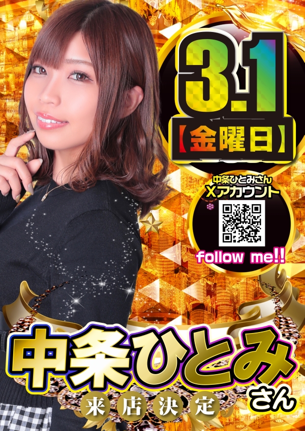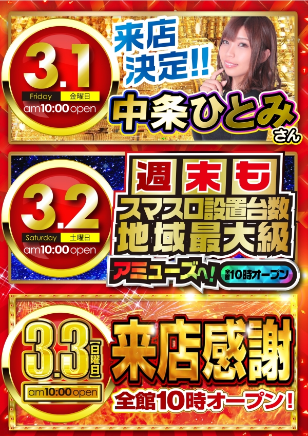 3月1日(金)『中条ひとみ』さん来店!【9:00】抽選開始!