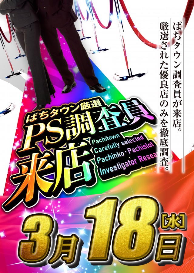 3月18日(水)10時開店 PS調査員(虹)来店!