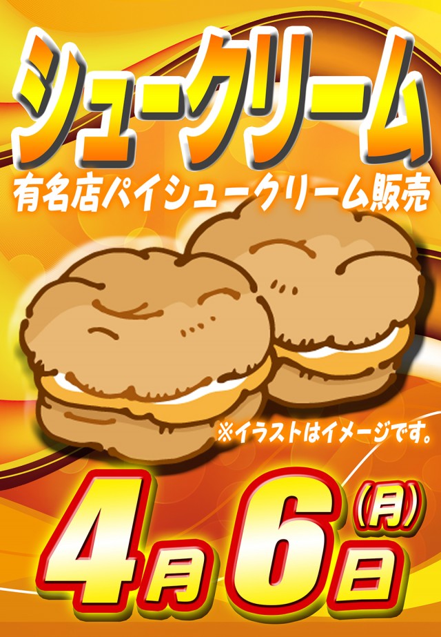 4月6日(月)10時開店 有名店パイシュークリーム販売会開催
