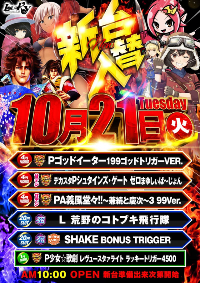 21日 (火) 新台入替‼️新台整理券は本日10時配布🌈