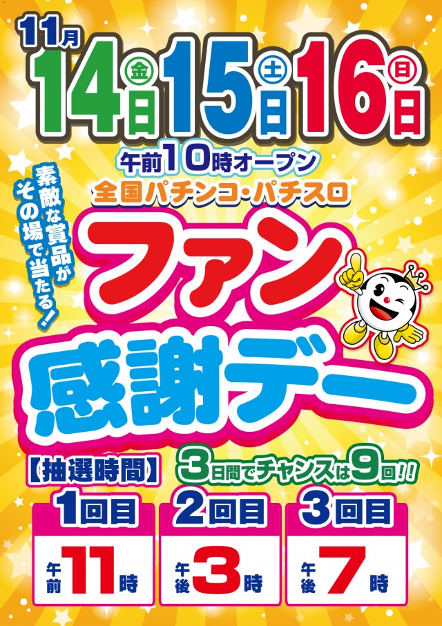 明日11月14日🔥ファン感謝祭🔥&甘デジ40台設置中🎵