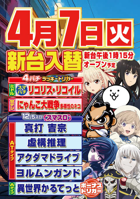 4月7日 🔥新台入替🔥&👊⚡全館10時開店👊⚡
