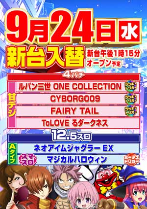 🔥9月24日 新台入替🔥是非!ご来店ください!!