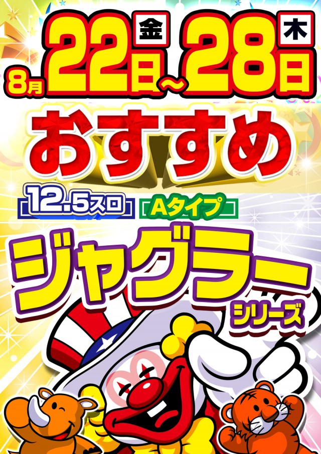 明日は8月24日の日曜日🤡ジャグラーシリーズおすすめ🤡
