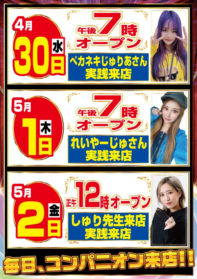 本日3日からは10時開店となります!変則時間だけじゃない!勢いは変わらず!12.5円でも「ヤレる」を是非ご体感ください!本日はねこまちさん来店です!入場抽選は9:30から中央入口前で実施します!皆様のご来店お待ちしております! -