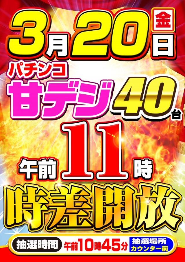 明日3月20日⭐甘デジ40台⭐11時時差開放⏰