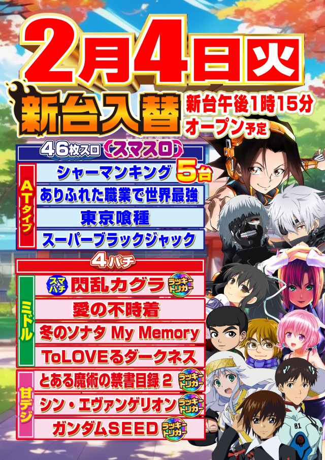 本日新台開店!11機種18台の導入!新台抽選は13時から!!