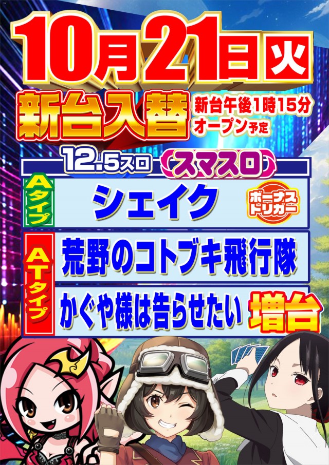 明日10月22日🔥新台入替2日目🔥朝一からお楽しみ下さい🎵