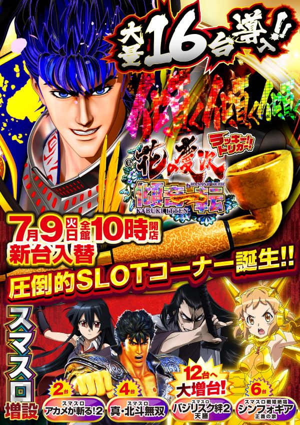 パチンコはAM9:00より先着順で入場券配布。スロットはアプリでの入場抽選とAM9:30より店舗駐車場で一般抽選を行います。※アプリでの入場終了後に一般の入場を開始します。 |