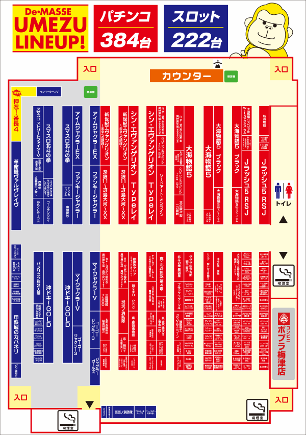 パチンコはAM9:00より先着順で入場券配布。スロットはアプリでの入場抽選とAM9:30より店舗駐車場で一般抽選を行います。※アプリでの入場終了後に一般の入場を開始します。 |