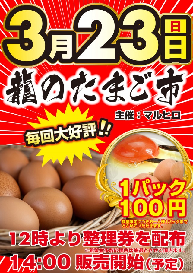 明日3月23日【日】全館10時開店!『龍のたまご市』開催!