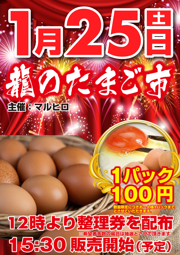 明日1月25日【土】龍のたまご市開催!全館10時開店!