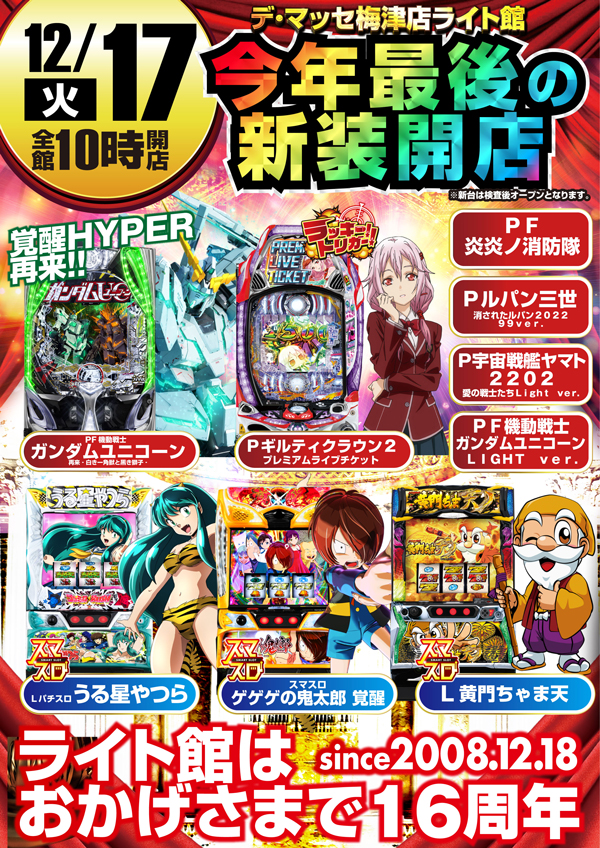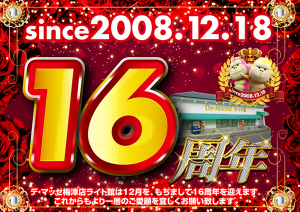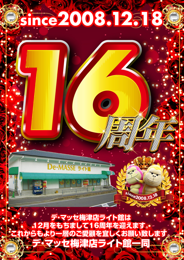 明日12月18日【水】16周年!全館10時一斉オープン!