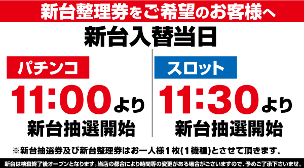 明日1月11日【土】全館10時開店!新台入替後初週末!