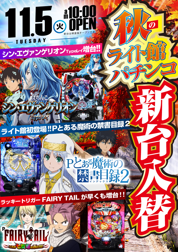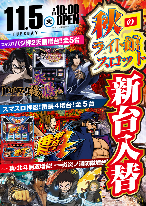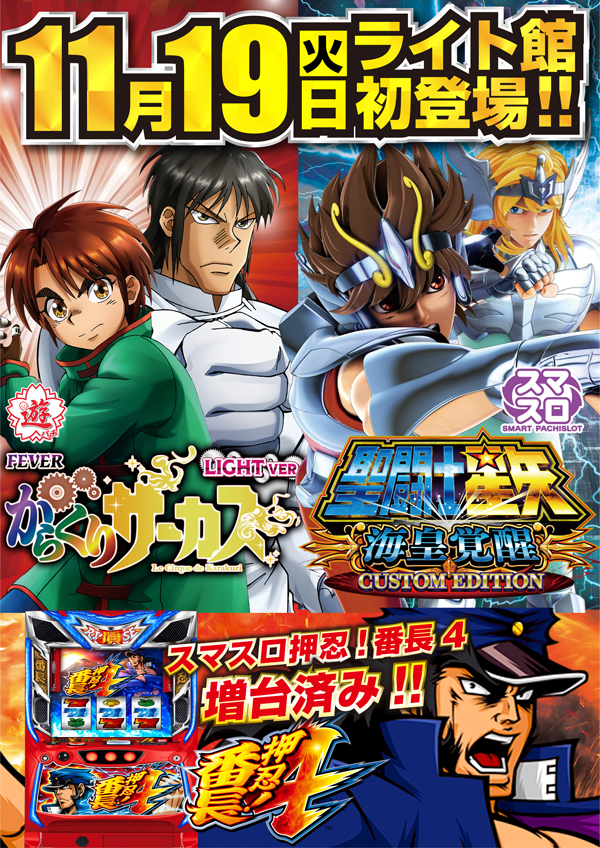 明日11月19日【火】全館10時開店!☆新台入替☆