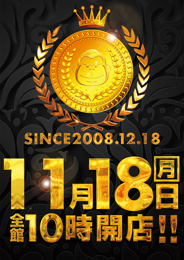 明日12月3日【火】全館10時開店!16周年新台入替第一弾!
