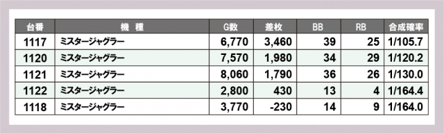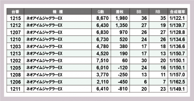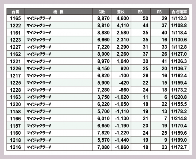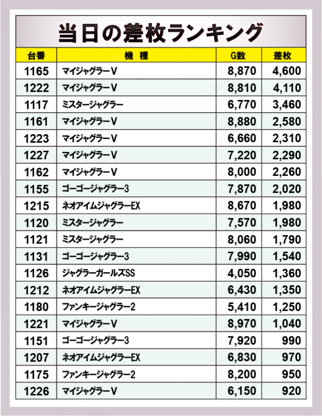 ジャグラー差枚ランキング