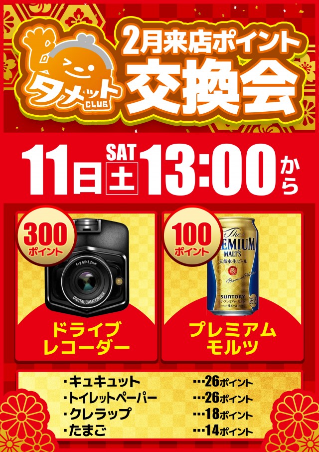 【毎月1回開催】11日土曜日はポイント交換会開催‼