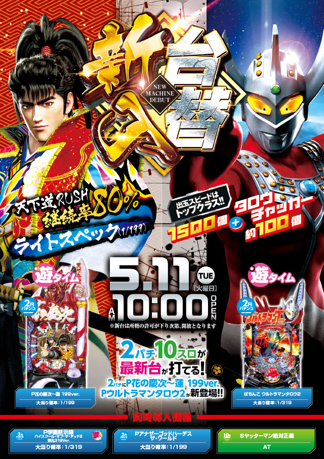 2円パチンコ68台/1円パチンコ99台/10円スロット68台/2.5円スロット32台 |
