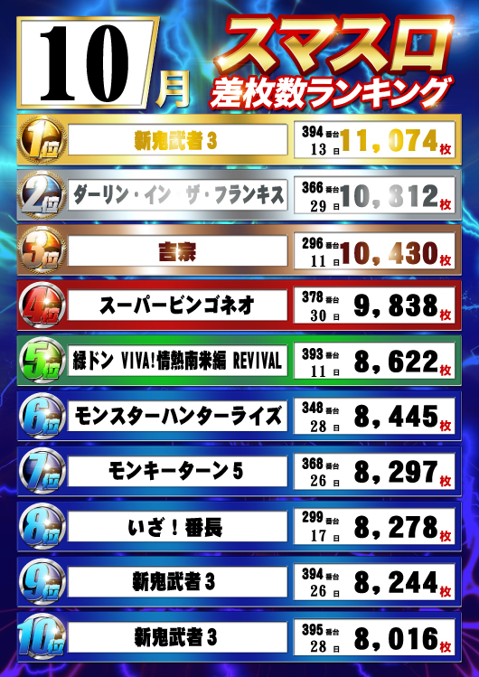 1位 11月6日(木) 2位 10月21日(火) 3位 10月20日(月)