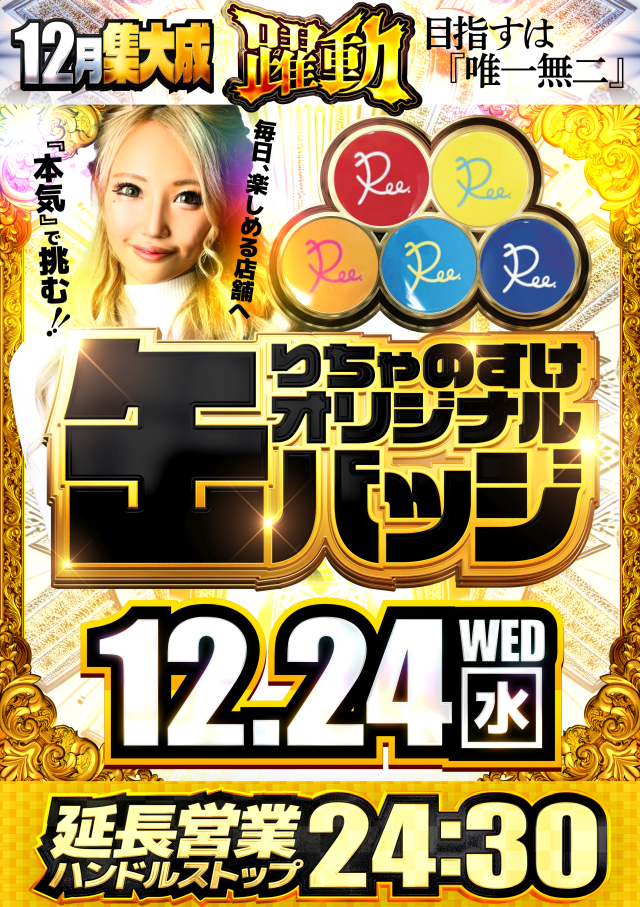 【集大成12月躍動×継続こそチカラ】【りちゃ5種×延長営業】