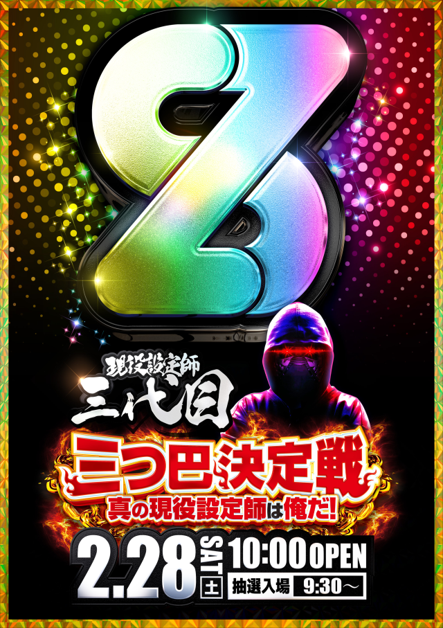 朝9時30分 中央出入口前にて入場抽選 抽選整理券なし 台確保券でのみ遊技台確保可能、物品のみは即空台開放 |
