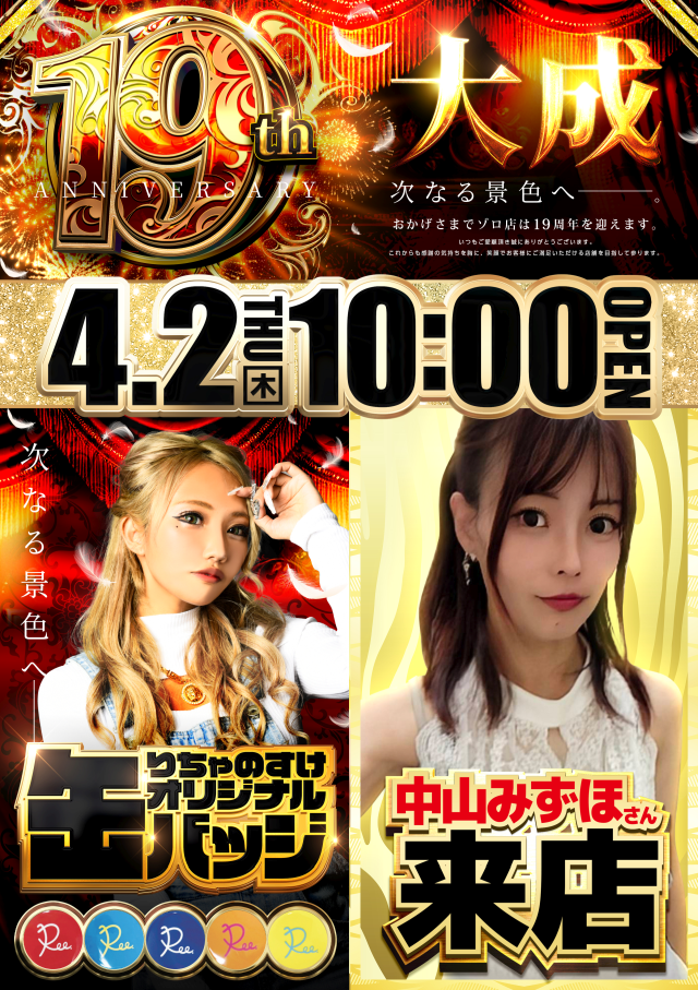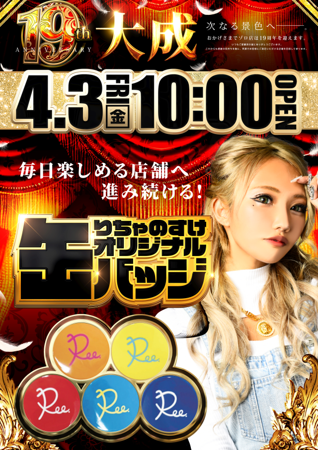 【19周年4月度×ゾロ(ぞろ)】【初代現役設定師一日店長】