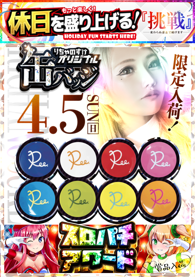 【19周年4月度×最新台を朝から楽しむ】【りちゃバッジ5種】