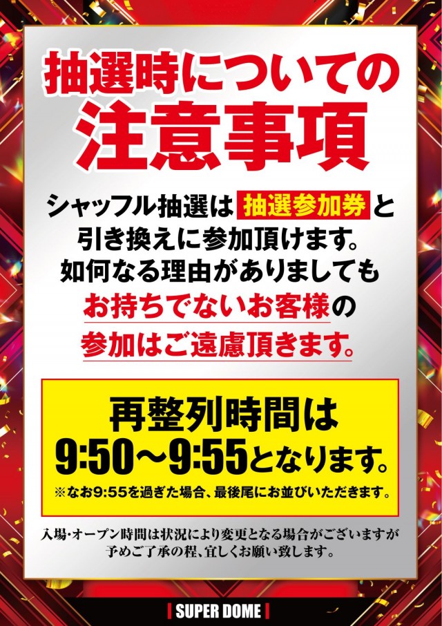 AM9:30までにご来店のお客様を対象に抽選致します |