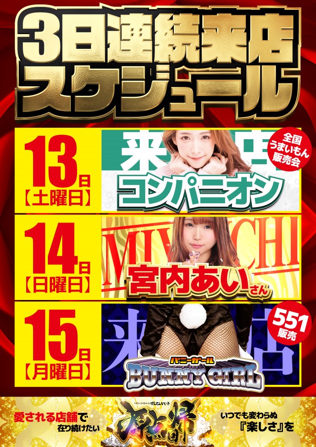 明日から3日連続来店!見逃し厳禁ですよ!