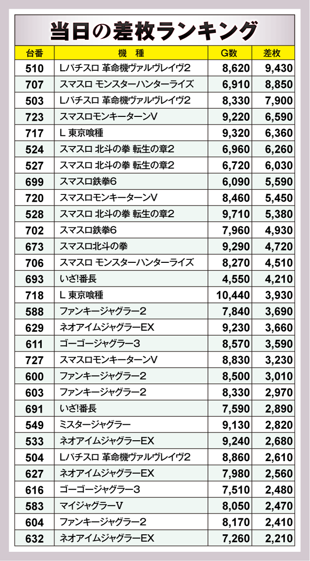 その他ピックアップ全台データ