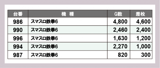 ※台番号順に掲載しています